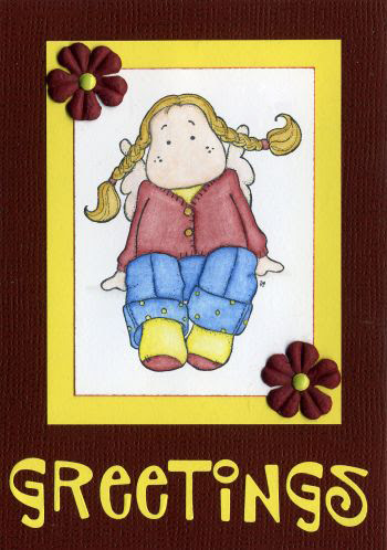Ich fange heute mal mit der letzten Karte an, die ich fertig bekommen habe. Ich "musste" doch endlich meine neuen Magnoliamotive einweihen und das habe ich natürlich auch getan. Die kleine Tilda mit der Strickjacke ist in meinen Augen einfach zu süß. Ich habe auch endlich mein Sunshine-Alphabet wieder benutzt.
