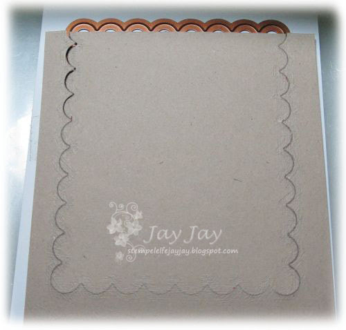 Now cut out your card's base. If it isn't goinf through both layers of cardstock just crank the whole thing through your cutting machine again. I used two layers of file cards under the Spellbinder to get more pressure.